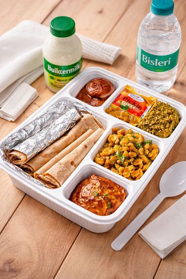 4 Chapati + 2 Sabzi + Pickle + Sweet. Clean & hygienic home food. Perfect for travel.out this item